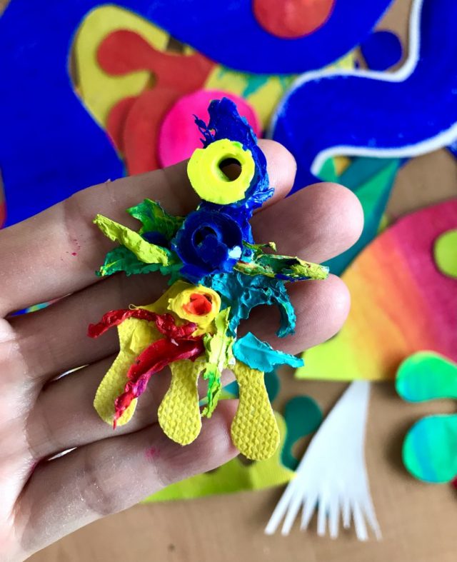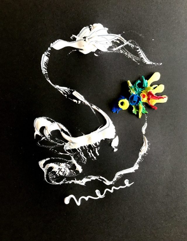 【一日一作プロジェクト】絵の具のカス・クズを使って「天獣・風守(かざもり)」を作った。これで「天地海の3聖獣」が勢ぞろい。平面世界である絵と違い、立体アートは形を作り出す面白さがある。