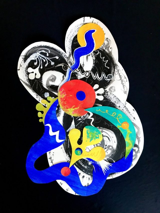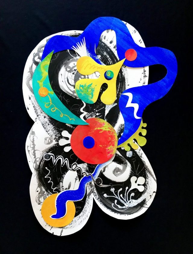 【一日一作プロジェクト】7福獣シリーズ「異舞結(いまいむすび)」作った。その横で大きな「黒枠」を制作中。もう次の作品に心は飛んでる〜(笑)。ふと見ると