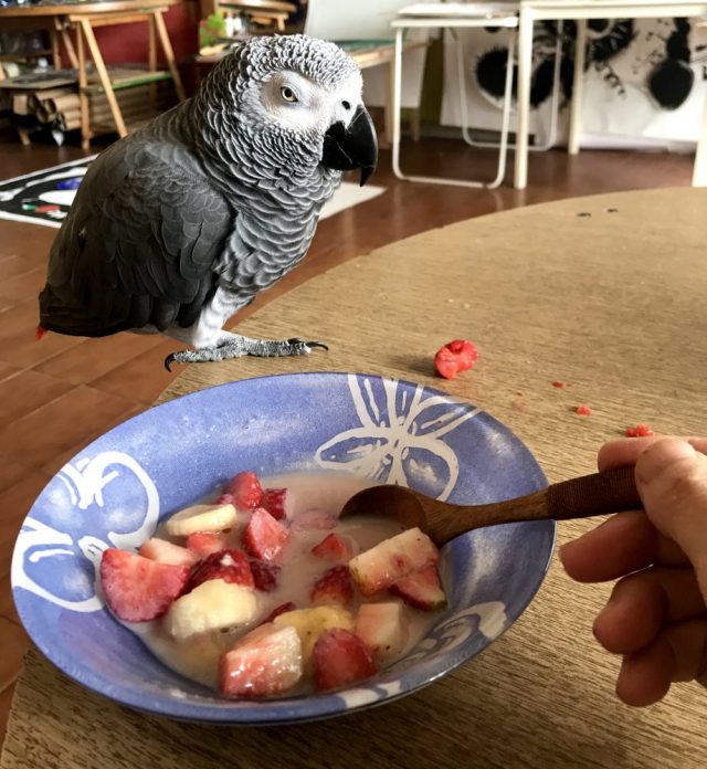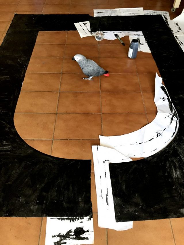 知らんけど(汗)。まぁ、足あとがついてたって、オウムとのコラボ。ってことで。小さなことは、気にしない。アートは寛容なのだ。
