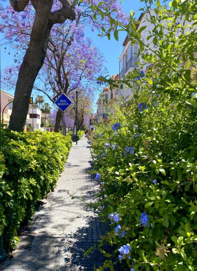 と友人にメッセージしたら、一言「動き過ぎ」と返って来た。だって。春は全てが輝いている。なんという生命感!ジャカランダの木陰、歩道にあふれる花々の小道(写真)。
