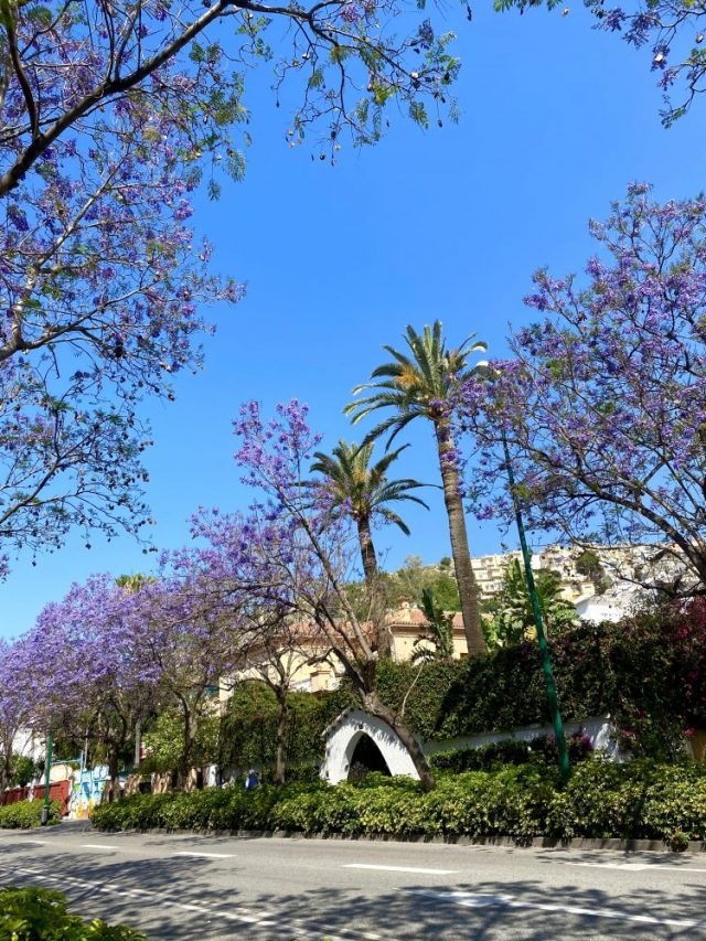 が、マラガの暦を刻む。雪の降らない温暖なマラガでは一年中、街路樹は緑色。そんな中、ジャカランダは春と秋、1年に2回花をつける。まるで