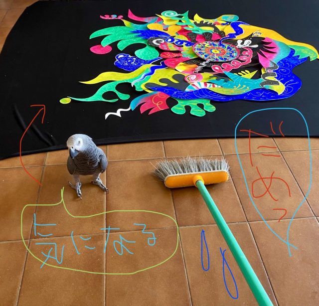 【一日一作プロジェクト】バッグアート「異獣(いじゅう)」を作った。今マラガは「ジャカランダ」の花が満開。桜、もしくはそれ以上の大樹で