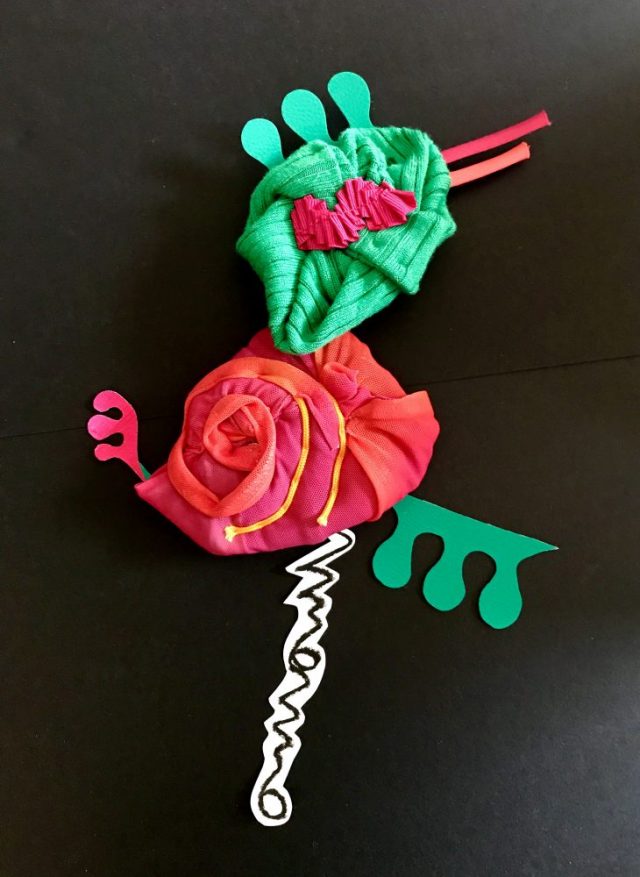 【一日一作プロジェクト】布・ひもで「パシオン玉鳥」を作った。今日はダンス教室の先生&仲間と布屋さんへ。7月に撮影する「タンゴ・フラメンコ」の衣装アクセサリーである