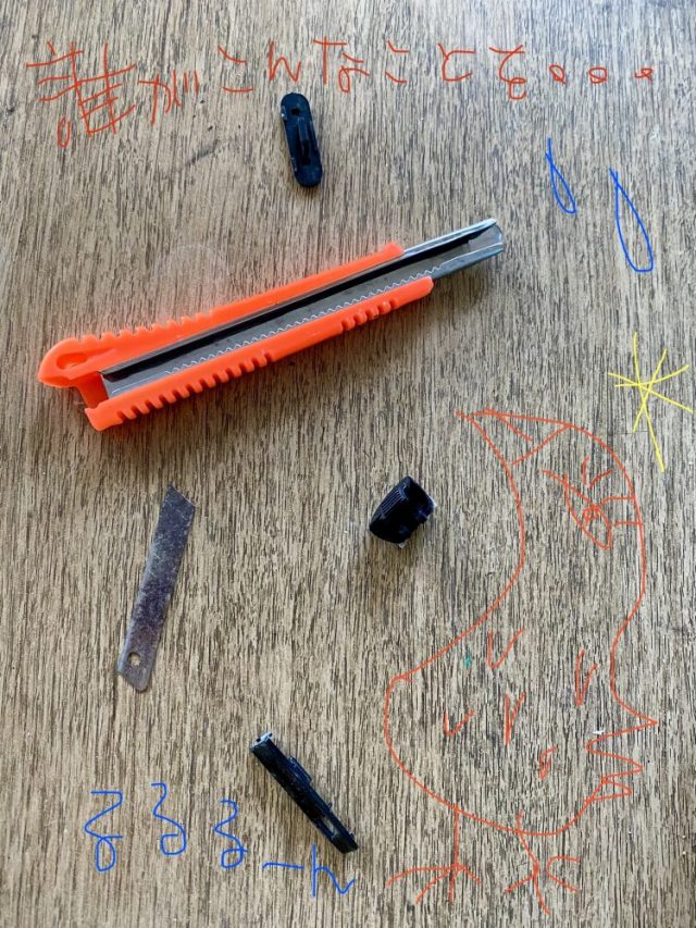 その目は「だって、使ってないじゃん」と言っている。だからって、ボロボロにせんでも。せっかくすてきなレモン色に覆われていたのに。とはいえ、筋肉野郎にとって