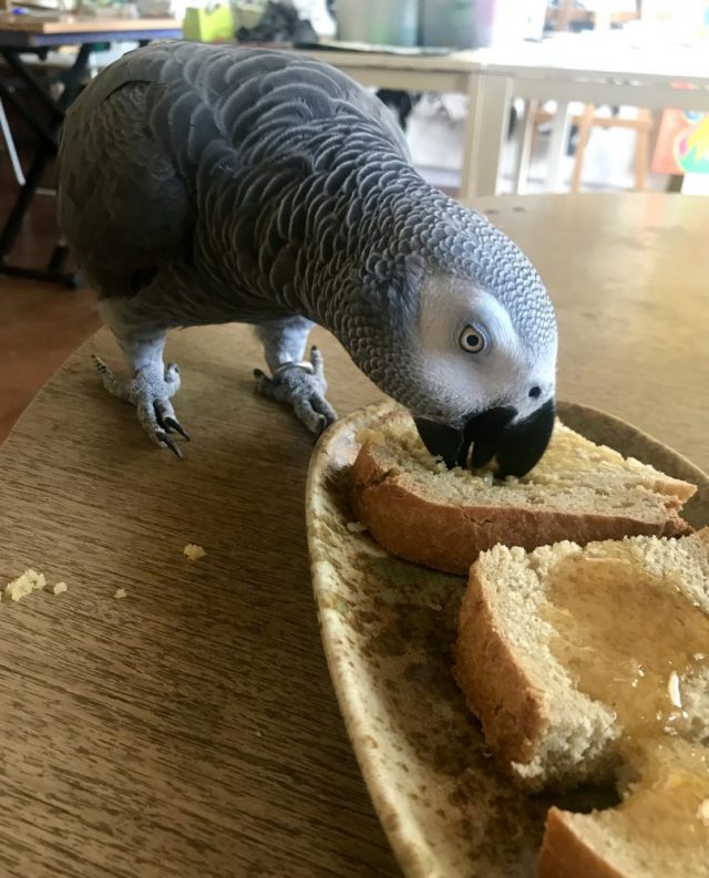 知らぬ間に、オウムによってダンベルのコーティング素材がかじり取られ、中の鉄が丸見え(涙)。