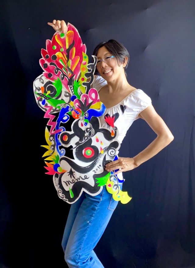 2019年に作った作品に手を加えて。鑑賞するためでなく「遊ぶ」「身につける」ために作った作品。展示会場で、自由にポーズを取って