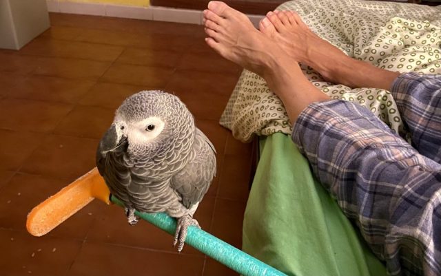 さて。春の訪れと共に「オウムを寝室から追い出す」のに成功。アトリエに置かれた鳥かごで、気持ちよく眠ってくれる。のはいいが、どうやら