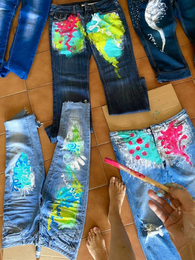 【一日一作プロジェクト】「もも作品ムービー・4」を作った。その横で「ジーパンペイント」「ゴミからの復活アート」も制作中。そして今週は