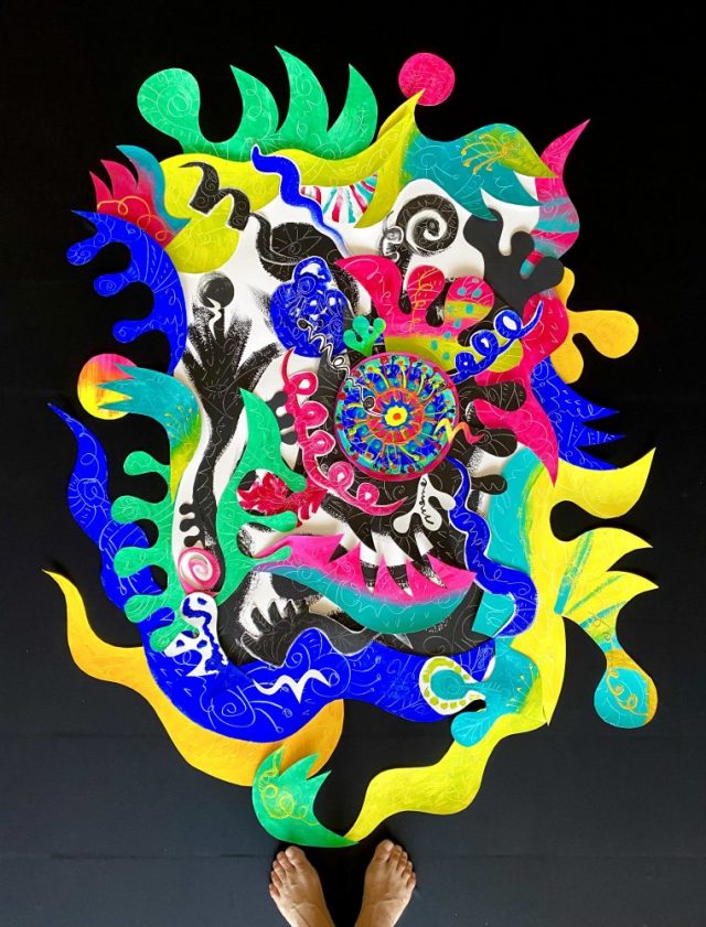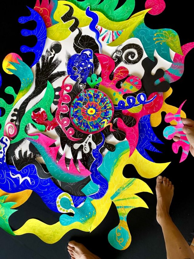 ができあがった(笑)。おぉお〜なんて楽しいんだろう。これを機に「日本の神話」や「日本の文化伝統」を、ももアートで作ってみたい!