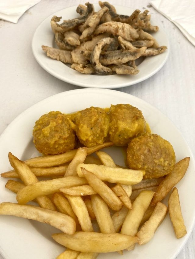 とりあえず、ビールで乾杯。ハビ吉、がんばれ〜。なんか料理がみんな茶色い(笑)。彩りを考え、横っちょにレタスをつけるとか、パセリを乗せるとかはしない。