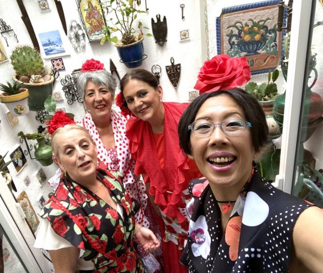 この3色が基本であること。見てください、4人のスタイル。まるで違うバリエーション。これが20人になるとどうなるのか。会場で仲間に会うのが楽しみ〜。さらに今回、フラメンコ衣装の一種である