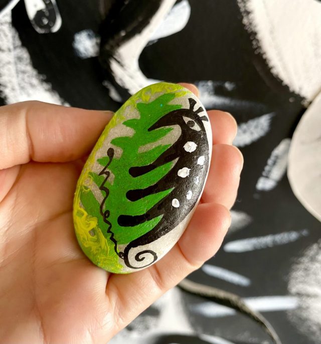 【一日一作プロジェクト】近所の浜辺で拾った石にペイントして「樹獣(じゅじゅう)」を作った。いよいよ今日は「フラメンコ動画撮影」。フェリア(夏祭り)でもないのに