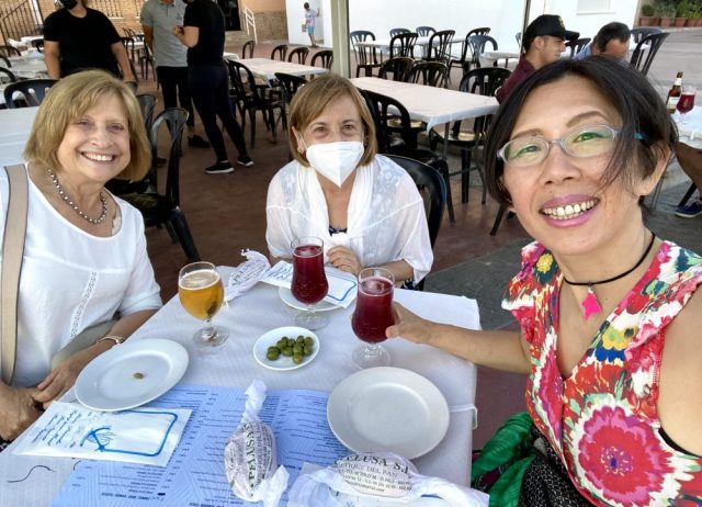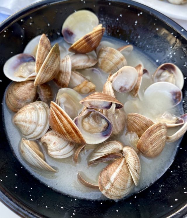「イワシもエビもアサリもおいしい〜」「次回はバルセロナで乾杯だね」