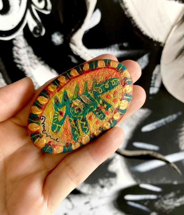 【一日一作プロジェクト】石にペイントして「天獣(てんじゅう)」を作った。バルセロナから訪ねてくれたマリは、私の親愛なるドゥーケ(ルイスのあだ名)の奥様。