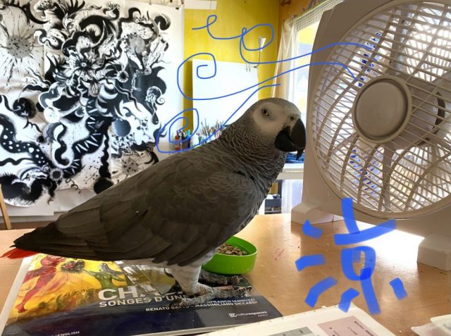 策で乗り越える。パソコン作業が3時間ほどあったので、デスクに扇風機を設置。快適じゃ〜。