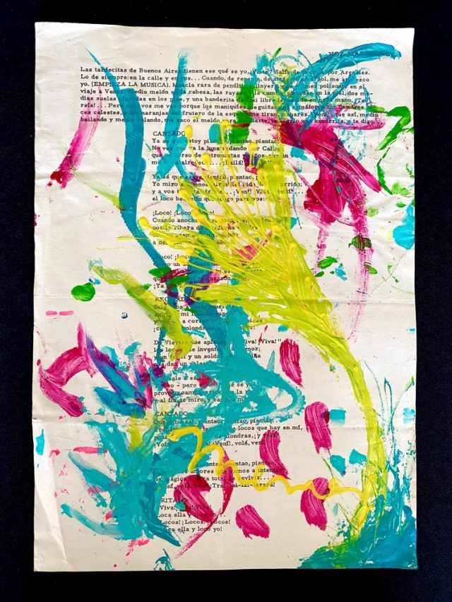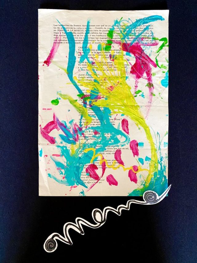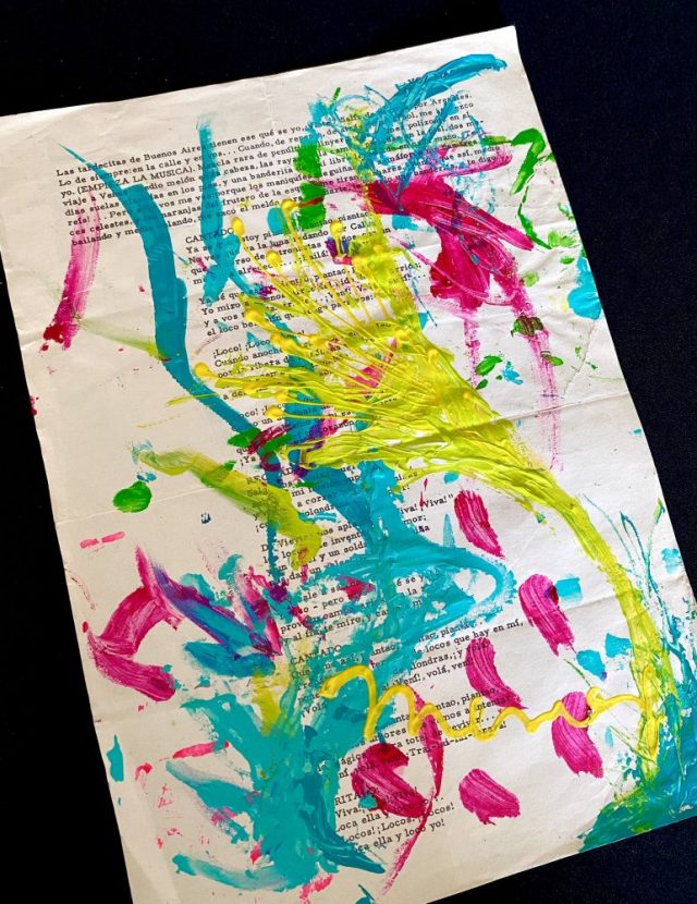 【一日一作プロジェクト】「自芽しぶき」を作った。実はこれ、他の作品をペイントするための下敷きの紙。ゴミからの復活アート・第2弾。さて。今日は朝から銀行へ。
