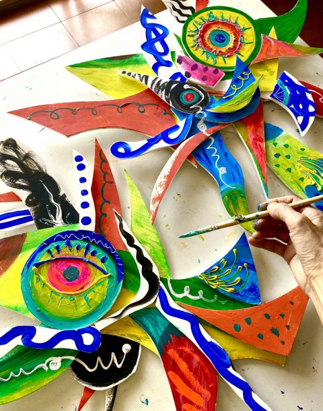 【一日一作プロジェクト】「もも作品ムービー・5」を作った。その横で、廃材のキレハシ使った「復活アート」も制作中。実は私、副鼻腔炎持ちでよく鼻が詰まる。