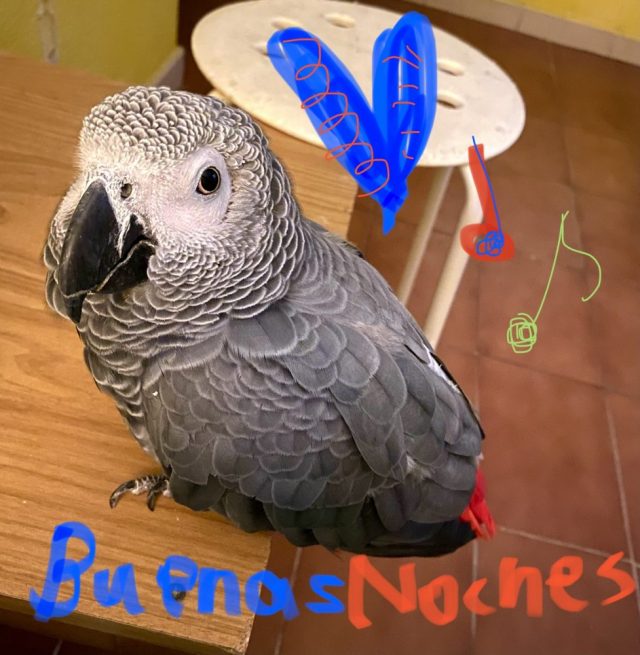 オウムは私たちが「リンゴ」に見えたに違いない(笑)。お店の人に見つからないよう、この秘密のミッションは1年近くも続いた。そしてついに。