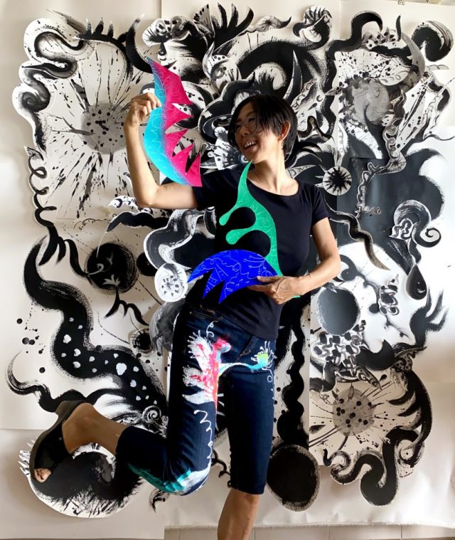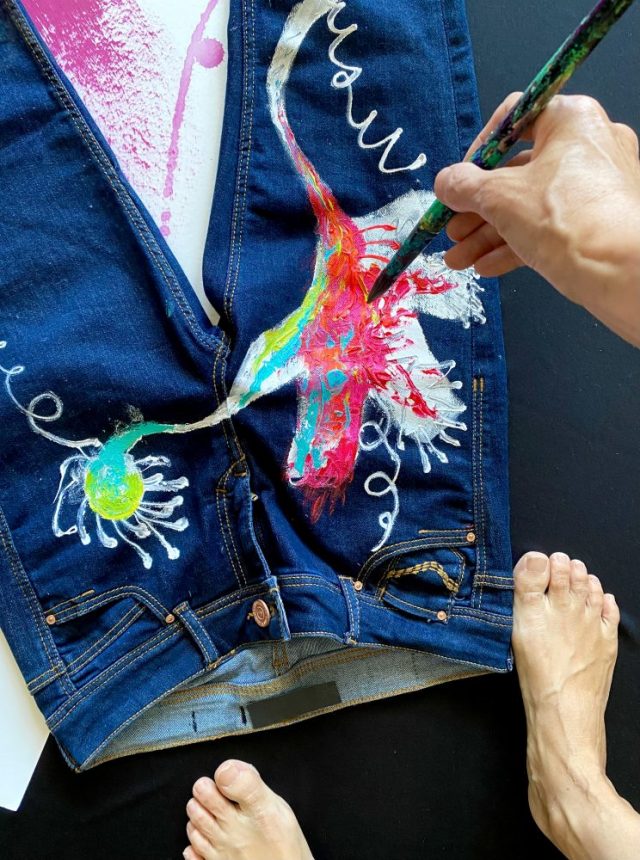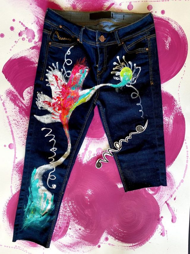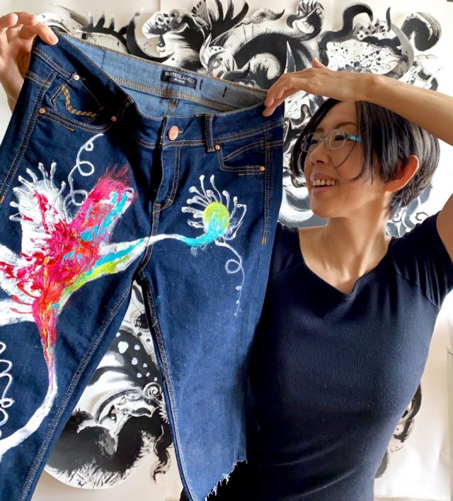 【一日一作プロジェクト】ジーパンにペイントして「百種百花(ひゃくだねひゃくばな)」を作った。今でこそ「衣類ペイント」はひらめきのままにペイントできるけれど、最初は