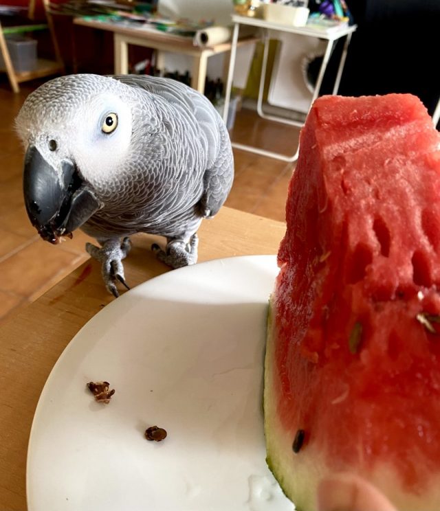 最近、スーパーへ行くと「種なしスイカ」ばかりで、がっくりと肩を落として帰る。うちのオウムは「種」が大好物。ってか、メイン(笑)。きっと栄養があるんだよね。