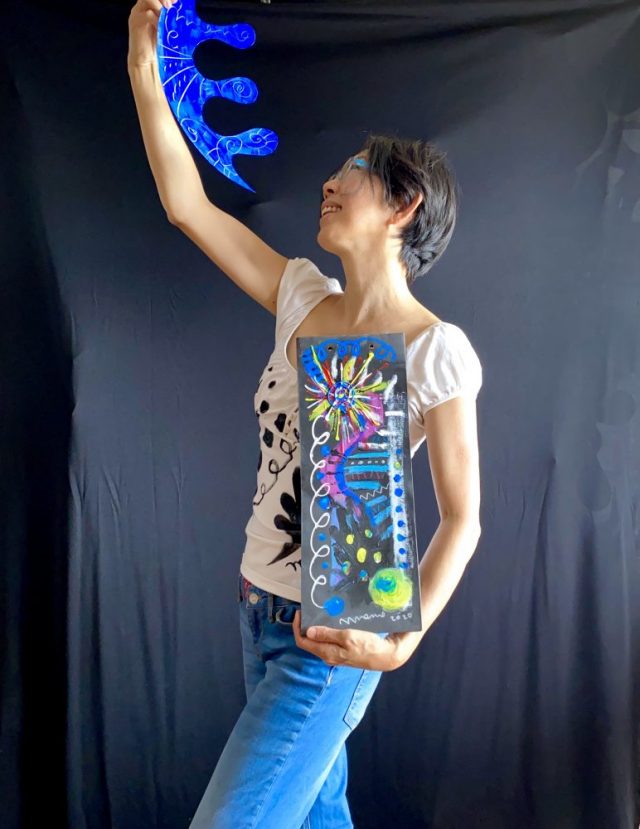 【一日一作プロジェクト】「月へ続く道」を作った。作業場の大整理に伴い「使わない画材」を、棚の奥から引っぱり出す。アクリル絵の具が好きなので
