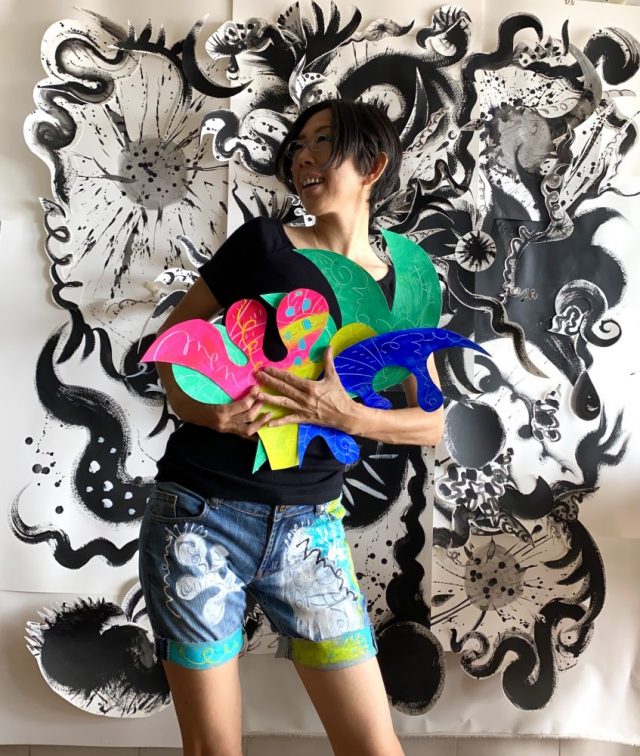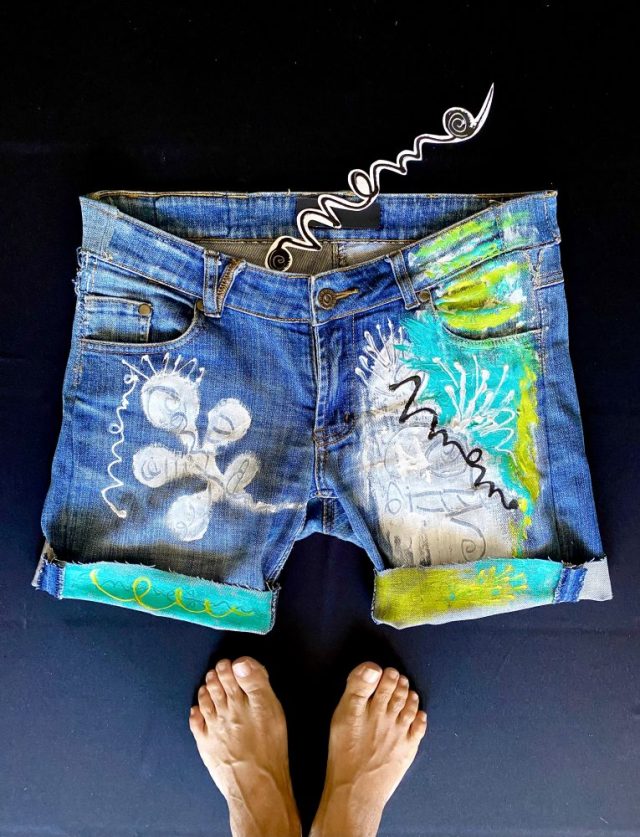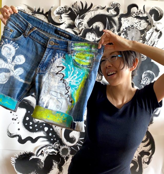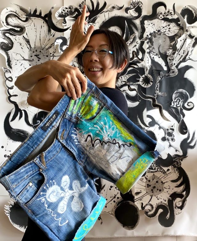 【一日一作プロジェクト】ジーパンをカット&ペイントして「夢咲結(ゆめ咲むすび)」を作った。ついに「東京オリンピック」が閉会を迎えた。