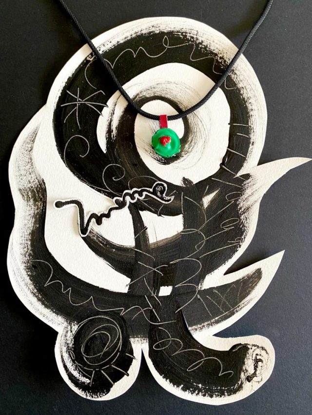 【一日一作プロジェクト】ネックレスアート「異丸(いまる)」作った。「日本上陸記・14」。羽田空港1階にある「ハイヤー乗り場」へ近づいて行くと