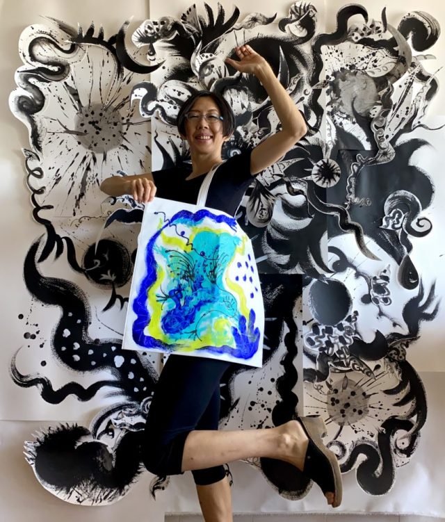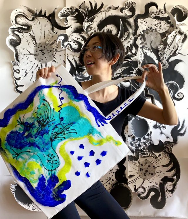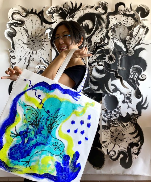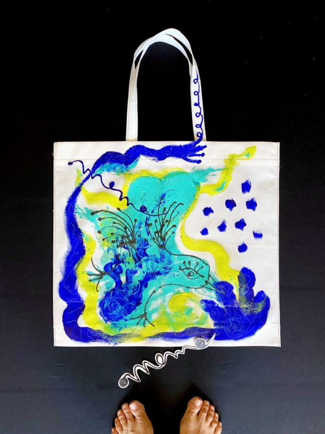 【一日一作プロジェクト】バッグにペイントして「ぴかり海鳥(ぴかりうみどり)」を作った。マラガのお隣のグラナダ県で、地震が発生。