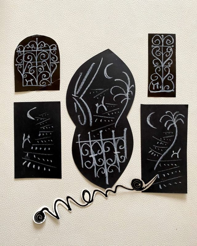 【一日一作プロジェクト】白クレヨンで描いたももパーツで「ふらふらぷらり」を作った。先日、お隣さんのお誕生日で「お祝い井戸端会議」が行われた。マラガっ子は