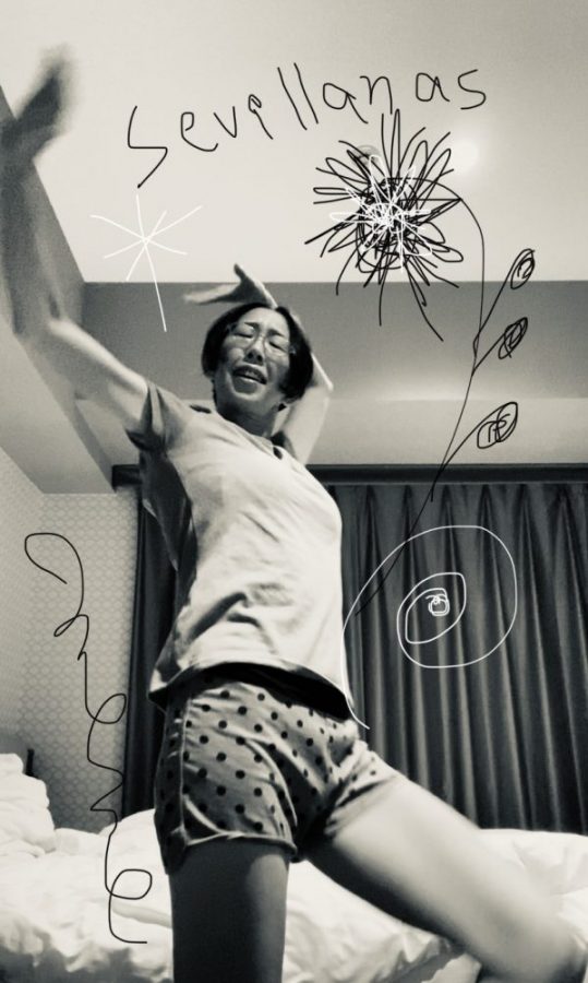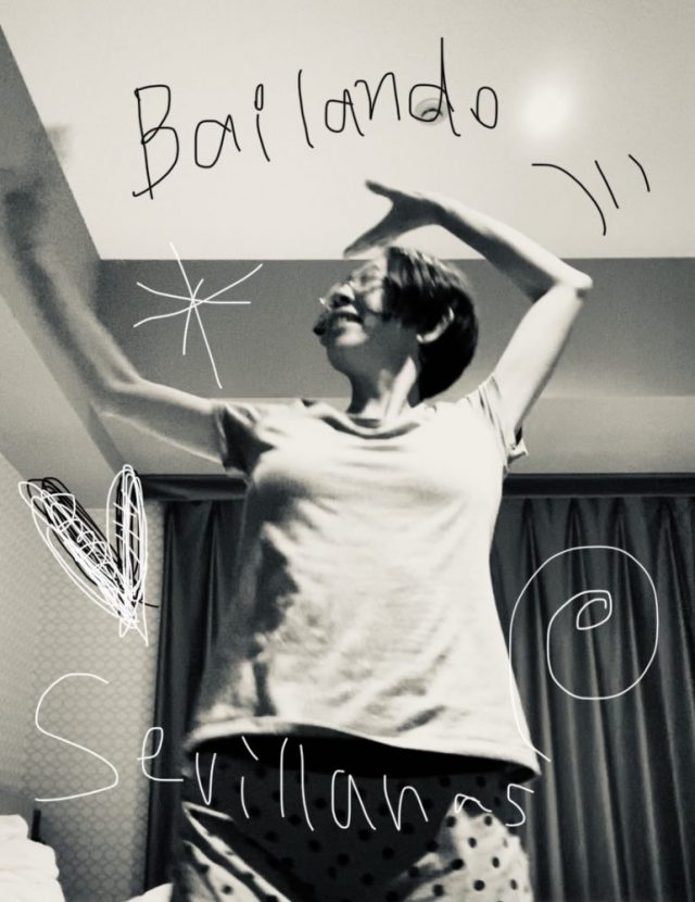 その言葉に、はっとする。そうだ。「踊ればいいんだ!」私の大好きなフラメンコ。セビジャーナスを。さっそくテーブルを移動し、スペースを作る。ついでにスマホもスタンバイ。