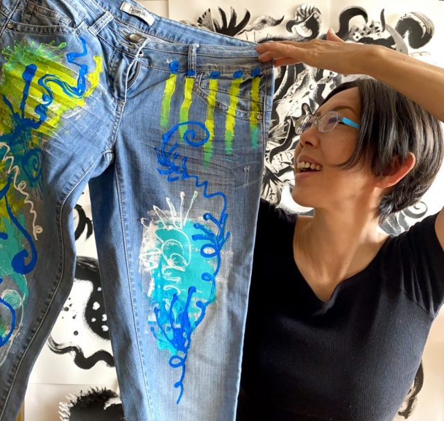 【一日一作プロジェクト】ジーパンにペイントして「夢芽片(ゆめかけら)」作った。作品の大整理を始め、はや1ヶ月。10点ほどの作品をアトリエに残し