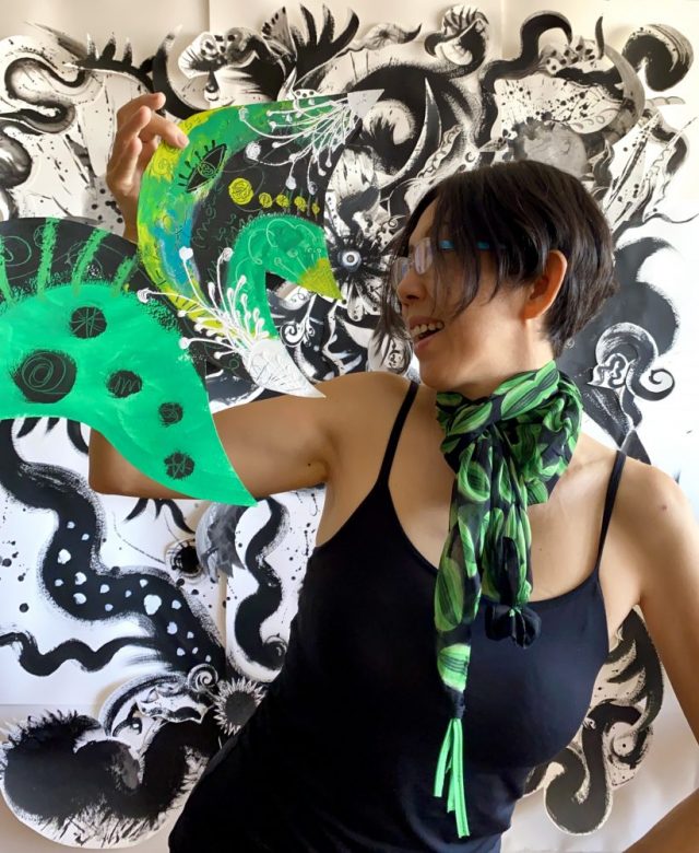 スペインで緑はエスペランサ(希望)。日本に無事入国し、父と一緒に過ごせますように。お祈りアート。眼下に2年ぶりの日本が見えて来た。いくぜ!(明日に続く)