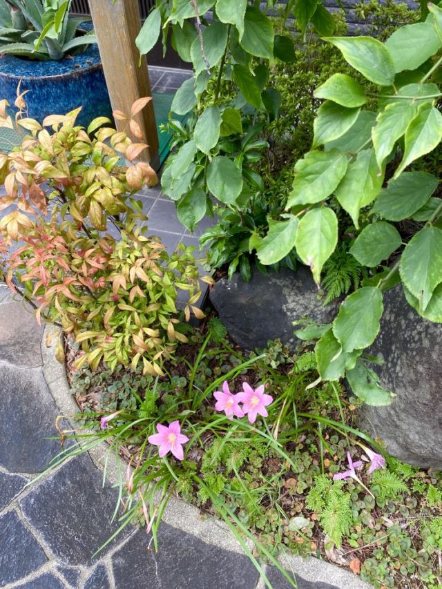 まあ、毎日少しずつやればよし。なんせ「自宅隔離中」なのだ。夕方ふらりと庭に出ると、朝つぼみだった花が、可憐なピンクの花びらを広げていた。