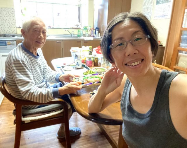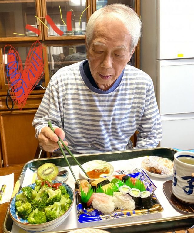 毎日、家の「大整理」が続くせいで、父の活動量もアップ。3食完食(写真)。動けば自然と汗も出る。私がノースリーブ&短パン、裸足で駆けずり回っていると