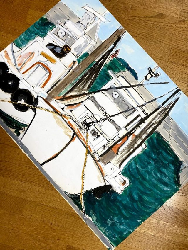 笑。懐かし〜(写真)。私の大好きな学校行事、写生会。朝から学年全員で「港」へ行き、お昼まで好きな場所に座って自由に絵を描く。お弁当を食べ、またひたすら描く。