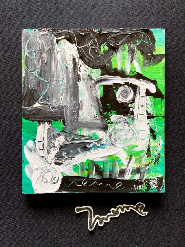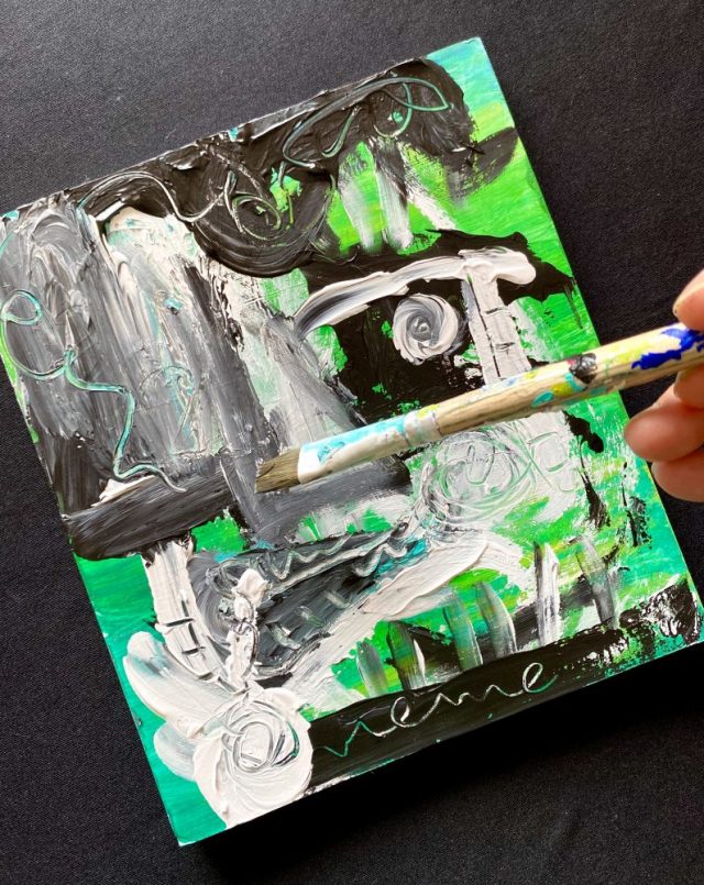 【一日一作プロジェクト】ペイントして「心の目を凝らせ」を作った。テラスから海を眺めていると、大空を渡って行く「鳥の一行」が見えた。それがなんとなく