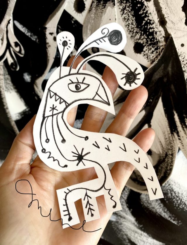 【一日一作プロジェクト】ペンシルで「花根っこ(はねっこ)」を作った。久しぶりにハビー吉ファミリーとランチ。私は無事スペイン帰国のご報告、ハビ吉は