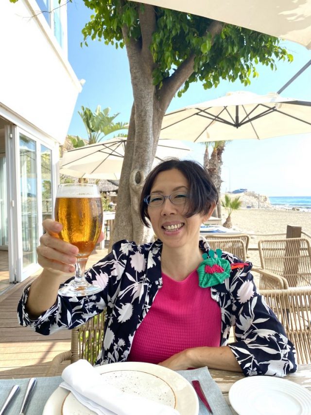 【一日一作プロジェクト】贈りものアート「青月〜Carmen」を作った。今日はカルメンのお誕生日お祝いランチ。港を散歩しながらビーチレストランへ。