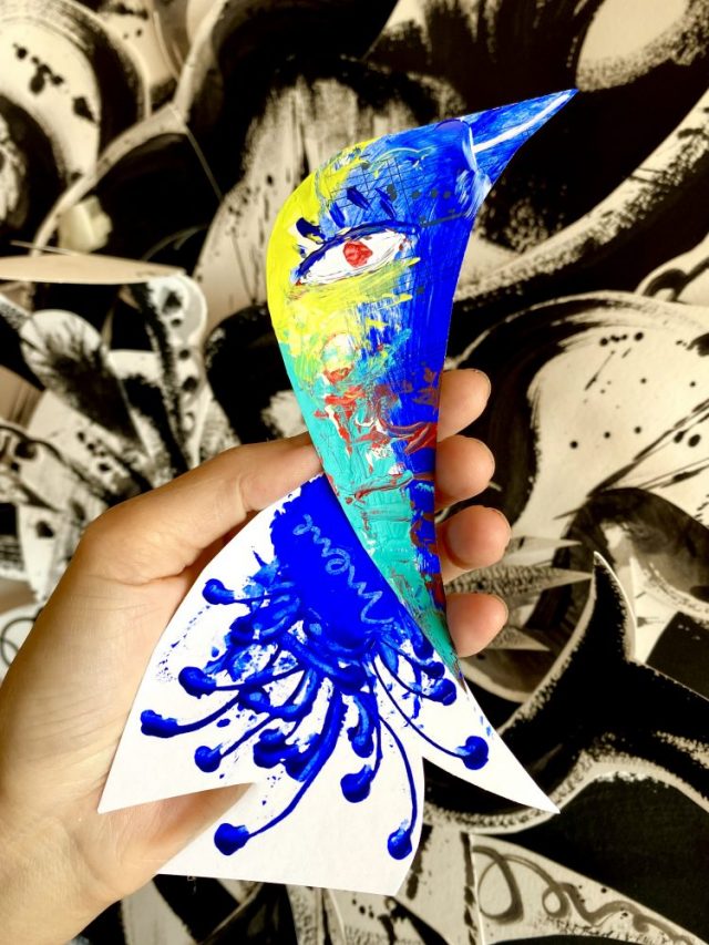 【一日一作プロジェクト】楽譜&紙で「愛告鳥(あいつげどり)」を作った。アトリエ生活が再開。ペイントを同時進行で始めたら、あっという間に