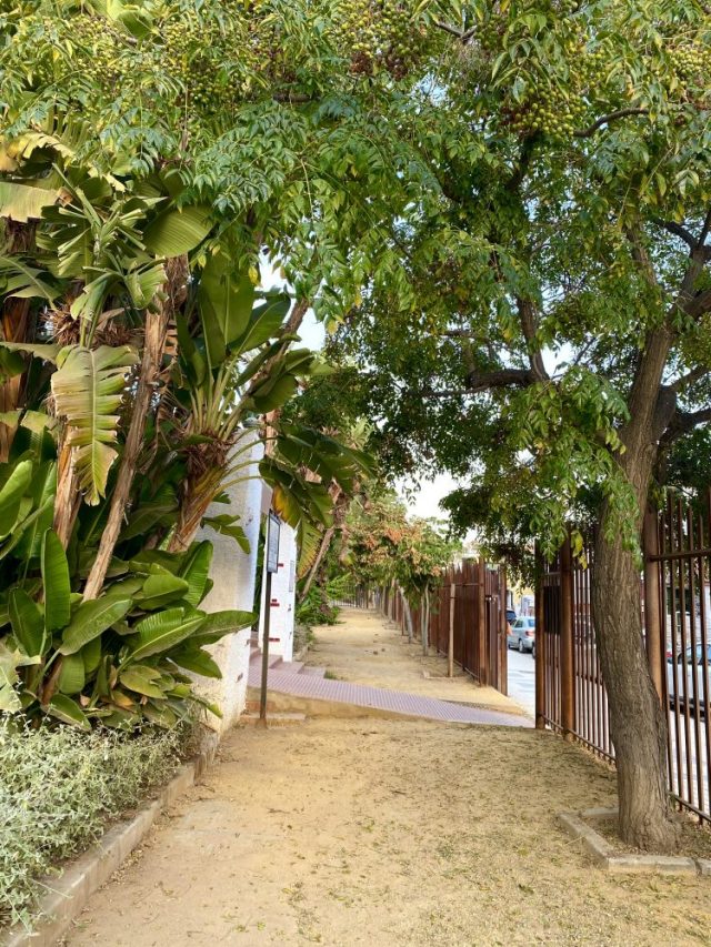 午後7時半に作業終了。近所へ散歩に。誰もいない公園の散歩道(写真)。生い茂る木の下を、のんびりと歩く。ふと見たら、手のあちこちに絵の具が。