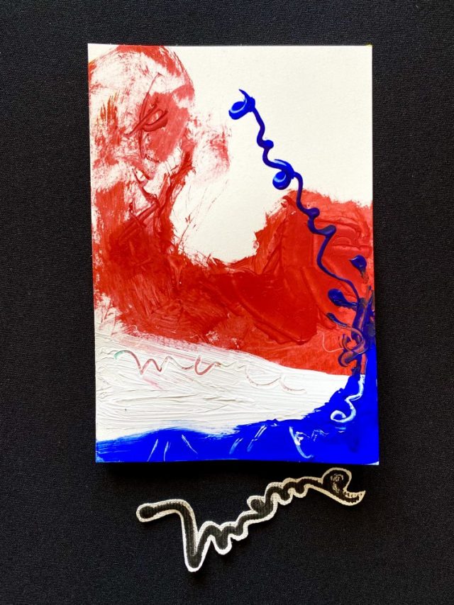 【一日一作プロジェクト】ペイントして「歓びに燃え、涙するピアノ」を作った。実はこれ「ピアノ」なんだけど(笑)赤がグランドピアノの上部分。取り憑かれたように