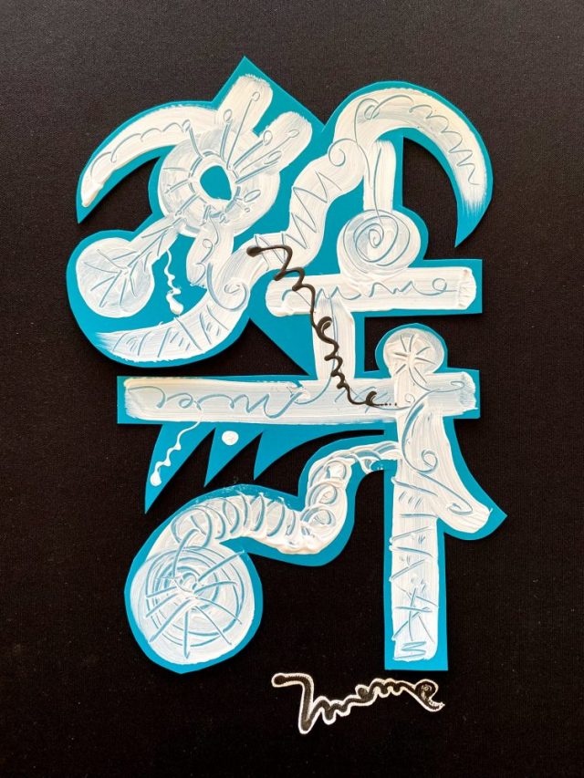 【一日一作プロジェクト】カリグラフィアート「祭芽(まつりめ)」を作った。実はこれ、クリアーファイルの表紙。プラスチックが傷んで割れ、捨てようかと手に取った瞬間