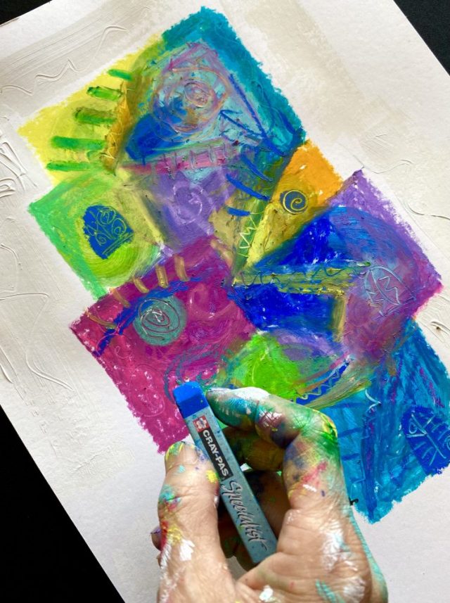 になっている(笑)。村は生きもの。今日みたいな「クレパス&クレヨンだけ」の作品もいいけれど、次は絵の具と組み合わせてペイントしてみたい。