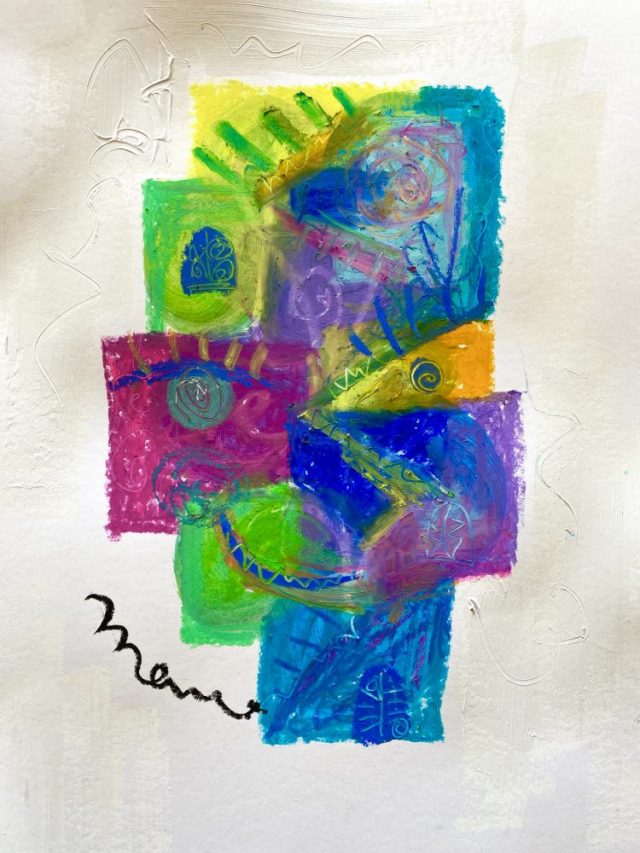 【一日一作プロジェクト】「精霊の住む坂道」を作った。久しぶりにクレパス&クレヨンで。いつものアクリル絵の具とは、タッチも色の重ね方も異なるので