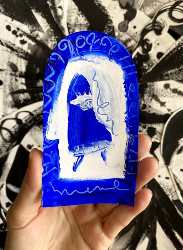 【一日一作プロジェクト】ペイントして「ピアニスタ」を作った。12月までの3ヶ月を「アートラボ」と称し、新しいスタイルや構図、タッチ、配色などをひたすら試している。毎日アトリエで