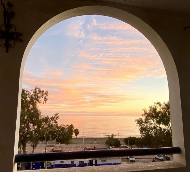 を見つめて暮らしている。それでも、夕暮れ時の「光」が変わった。今日もクルーズ船が、サーモンゴールドに包まれた空と海の中を進んで行く。波のない地中海の、なんという安心感。