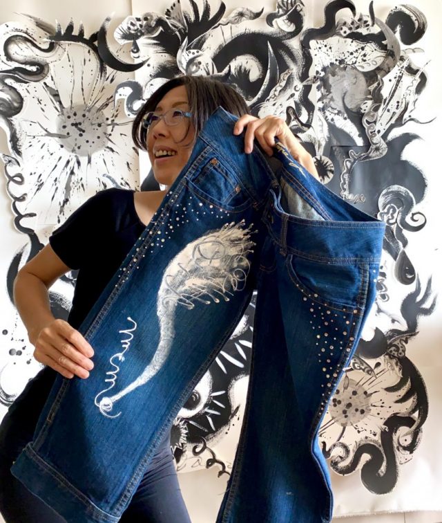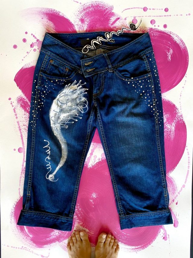 【一日一作プロジェクト】ジーパンにペイントして「夢種(ゆめだね)」を作った。先日、豊橋の父から