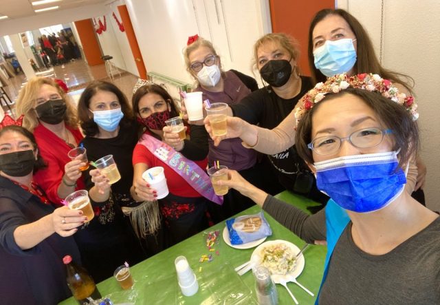 誕生日会が待っていた。マリアと私、2人とも今週が誕生日。「冠とタスキ」をつけてもらい、一気にテンションが上がる。