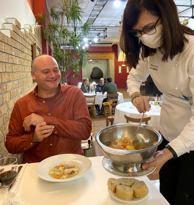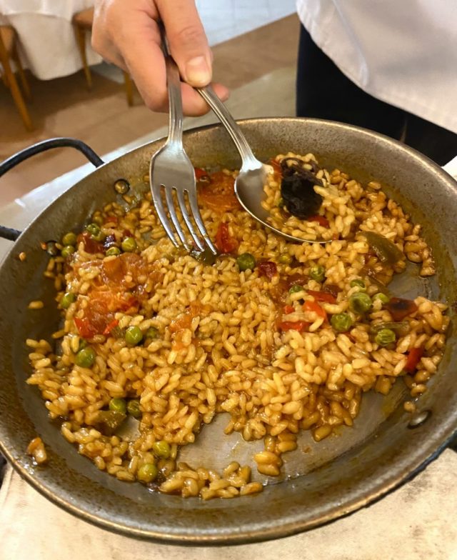 そうすれば、いろんな味が楽しめる〜。まずは「パエジャ」と「煮込みスープ」から。