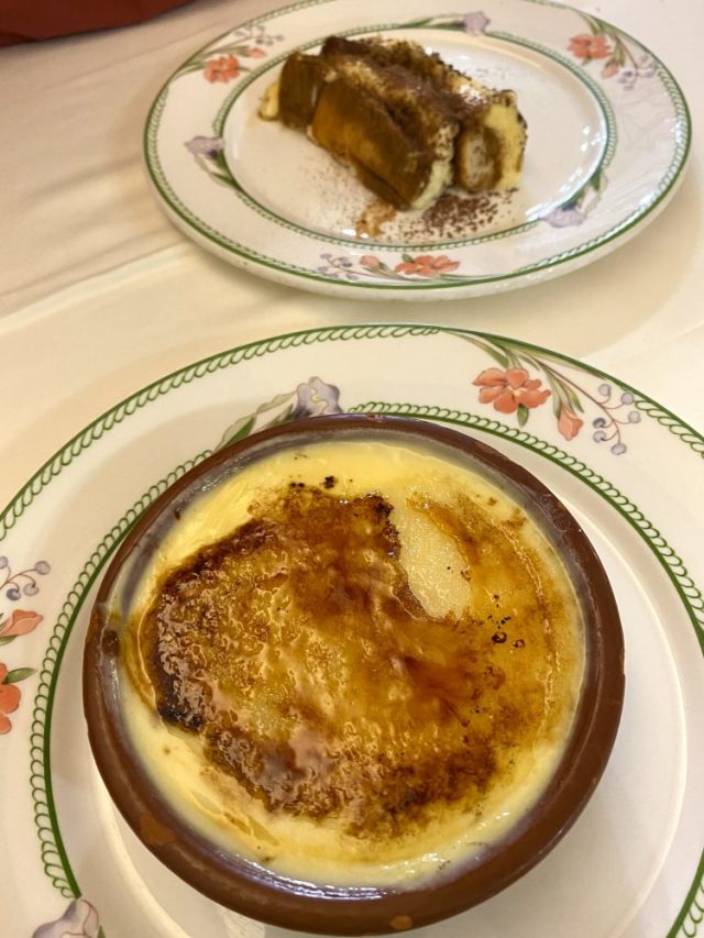 デザートの「ティラミス」と「カタルーニャ風クリーム」も絶品。もうお腹いっぱい。とはいえ、ゆっくり休んでいる時間はない。
